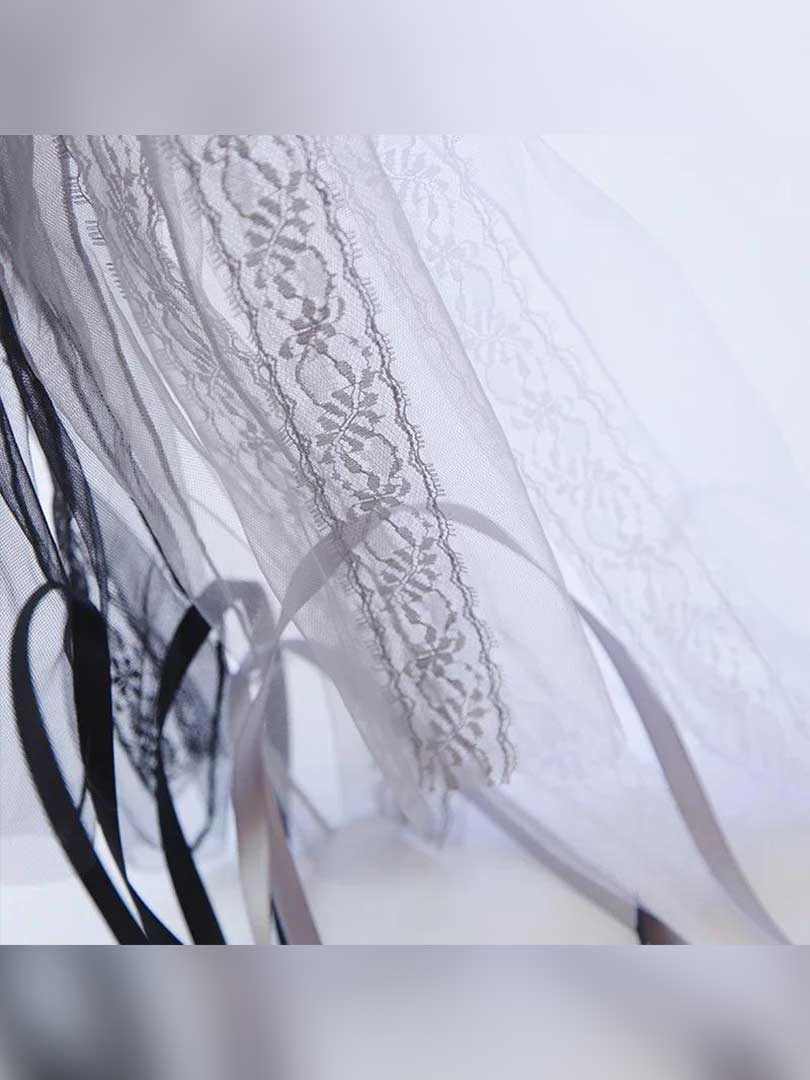 Socks made of fine and dense mesh, with applied lace. A feminine and elegant accessory.