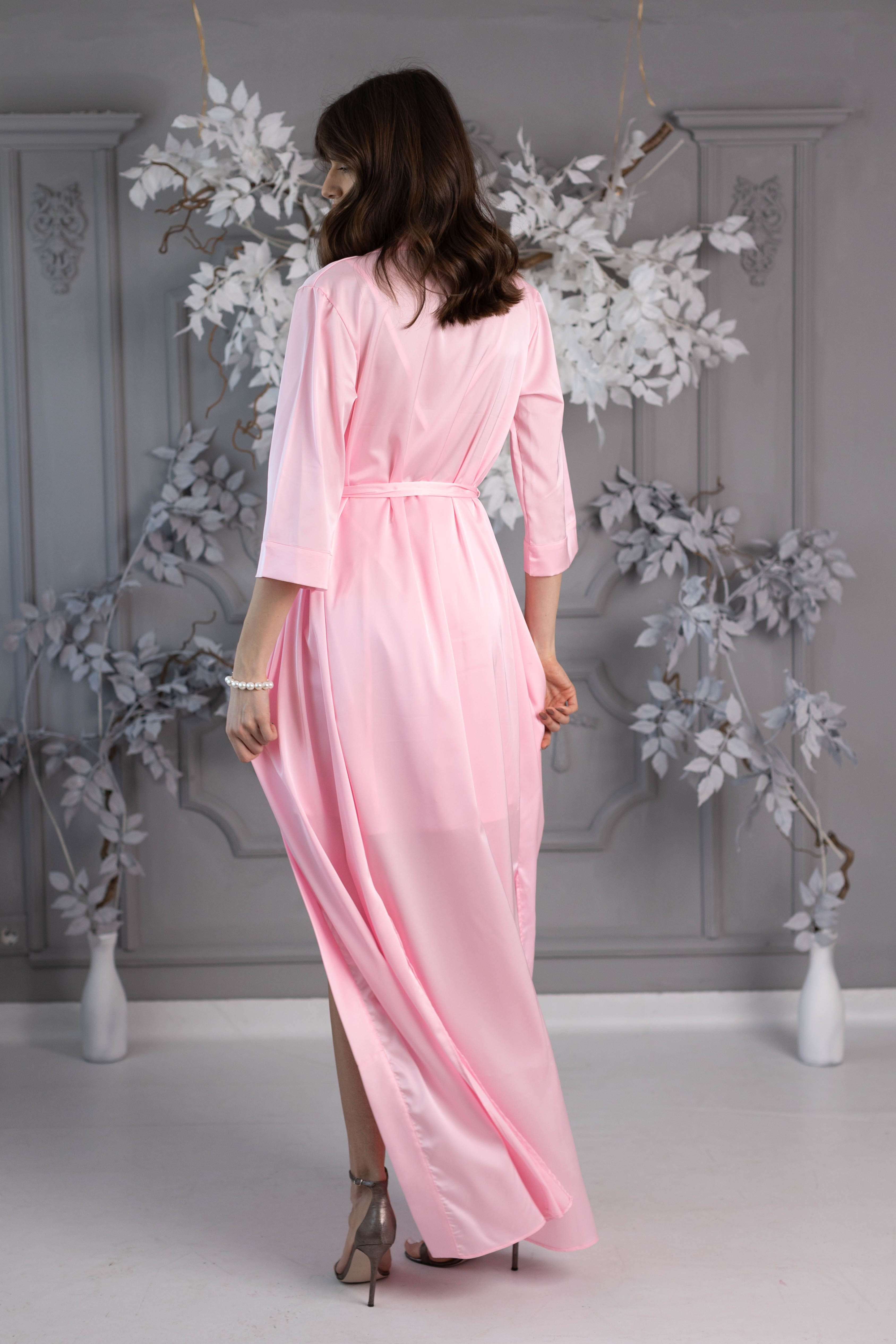 Set Satin Wave Long Robe + Backless Dress Baby Pink