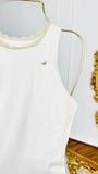 Está completamente doblado con dos hileras de material, para obtener un efecto FORMADOR pero también SOPORTE en la zona del pecho.