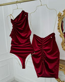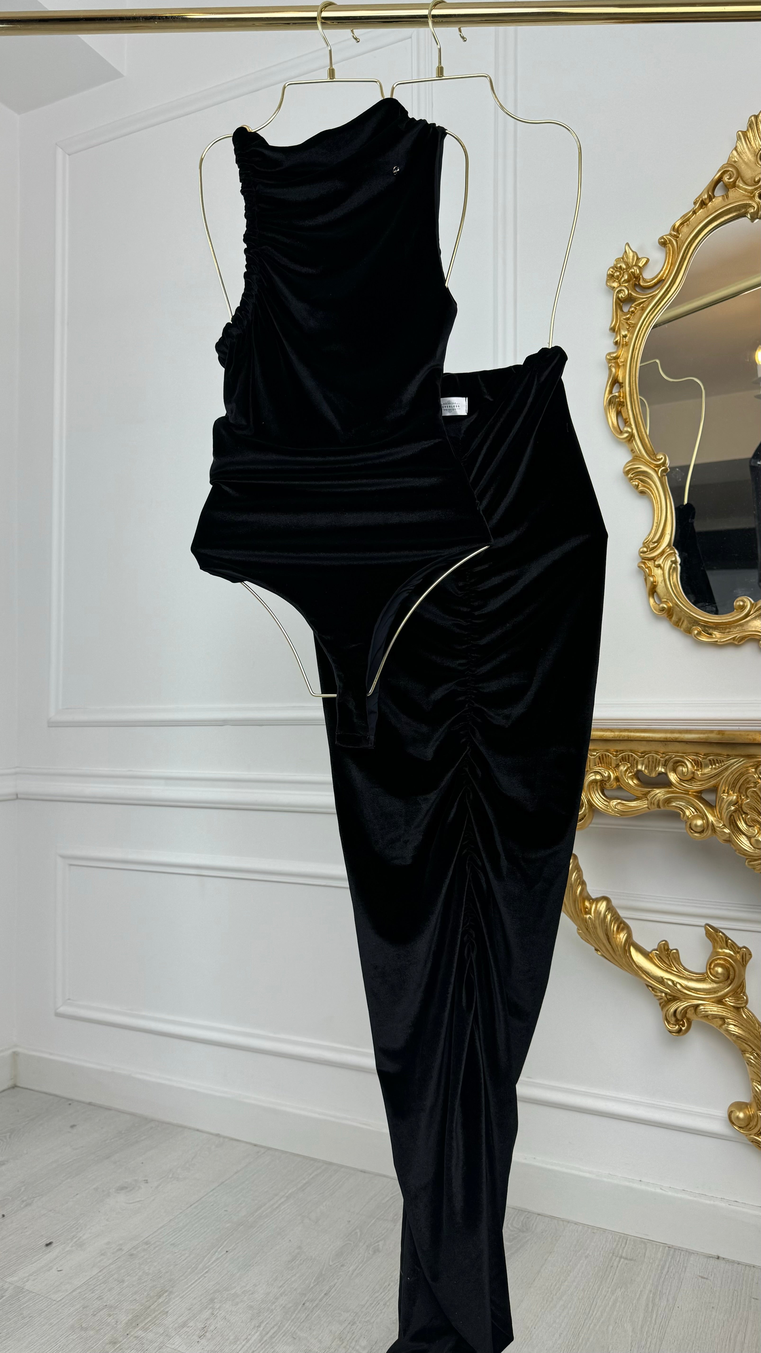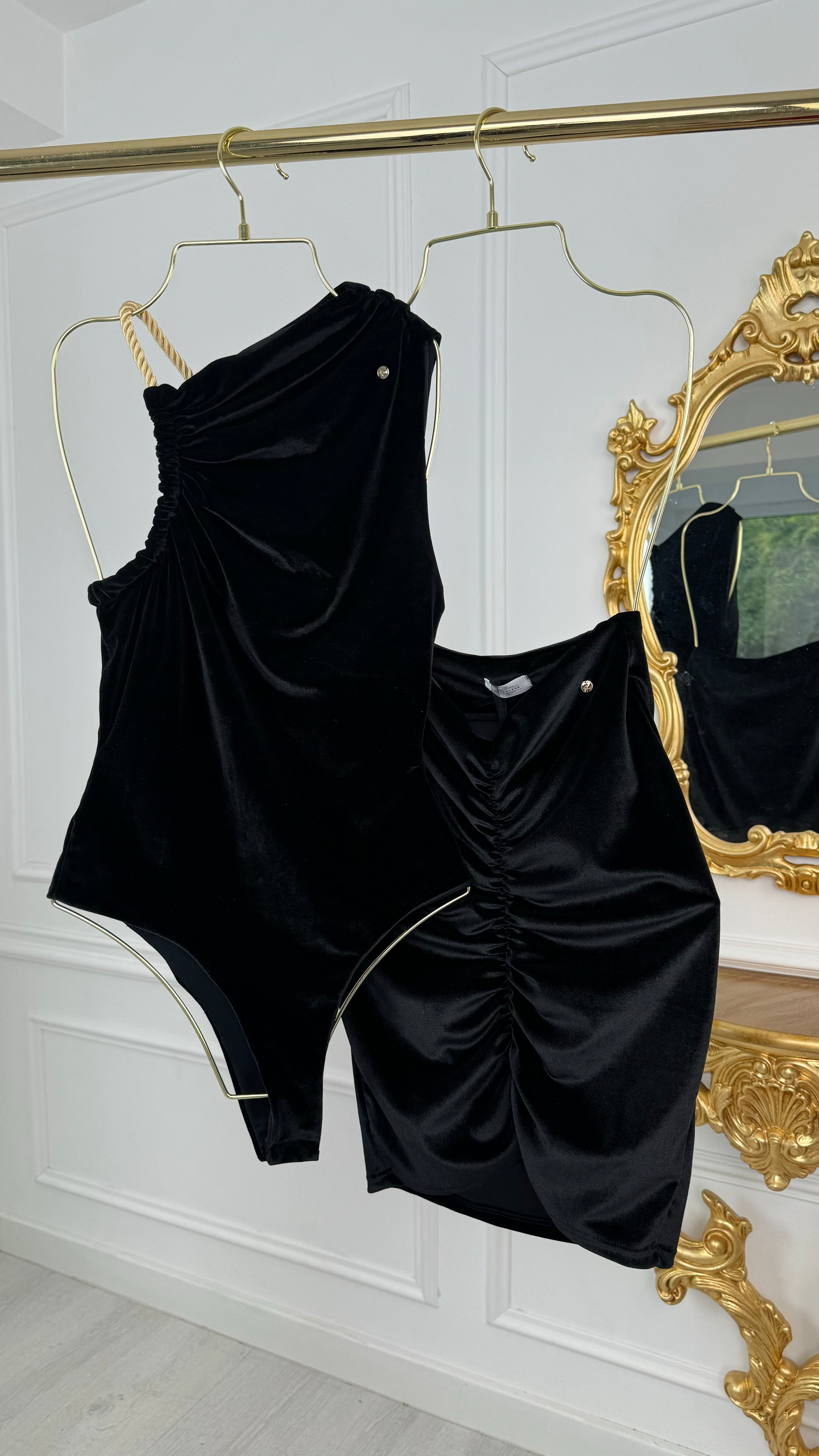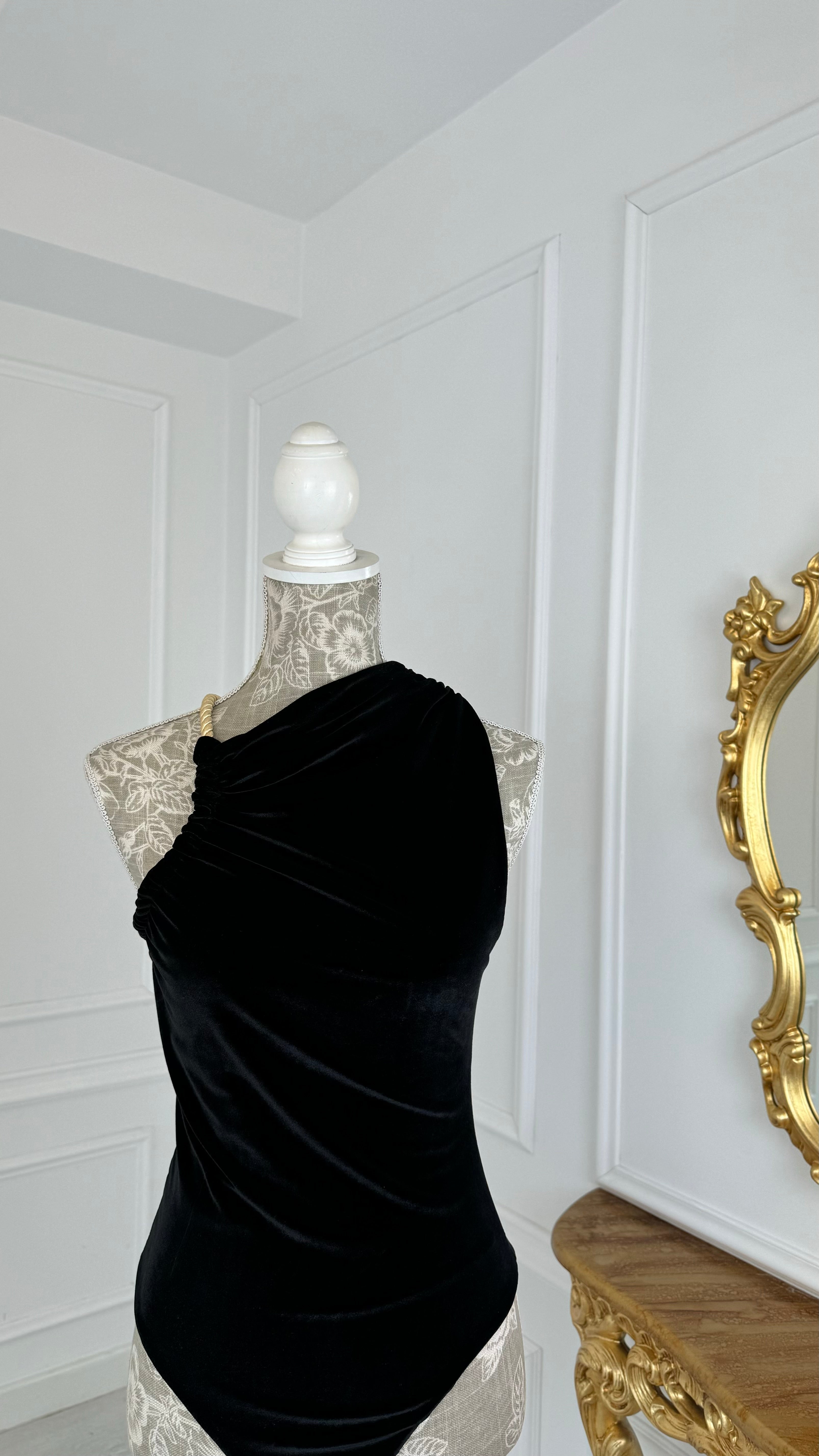 El body "Athena" Velvet Variant está confeccionado en terciopelo elástico doblado con material elástico de primera calidad, procedente de Italia, muy agradable al tacto, permisivo en términos de elasticidad, en el que la piel respirará y te sentirás especialmente agradable al tacto. Está completamente doblado con dos filas de material, para obtener un efecto moldeador pero también soporte en la zona del pecho.
