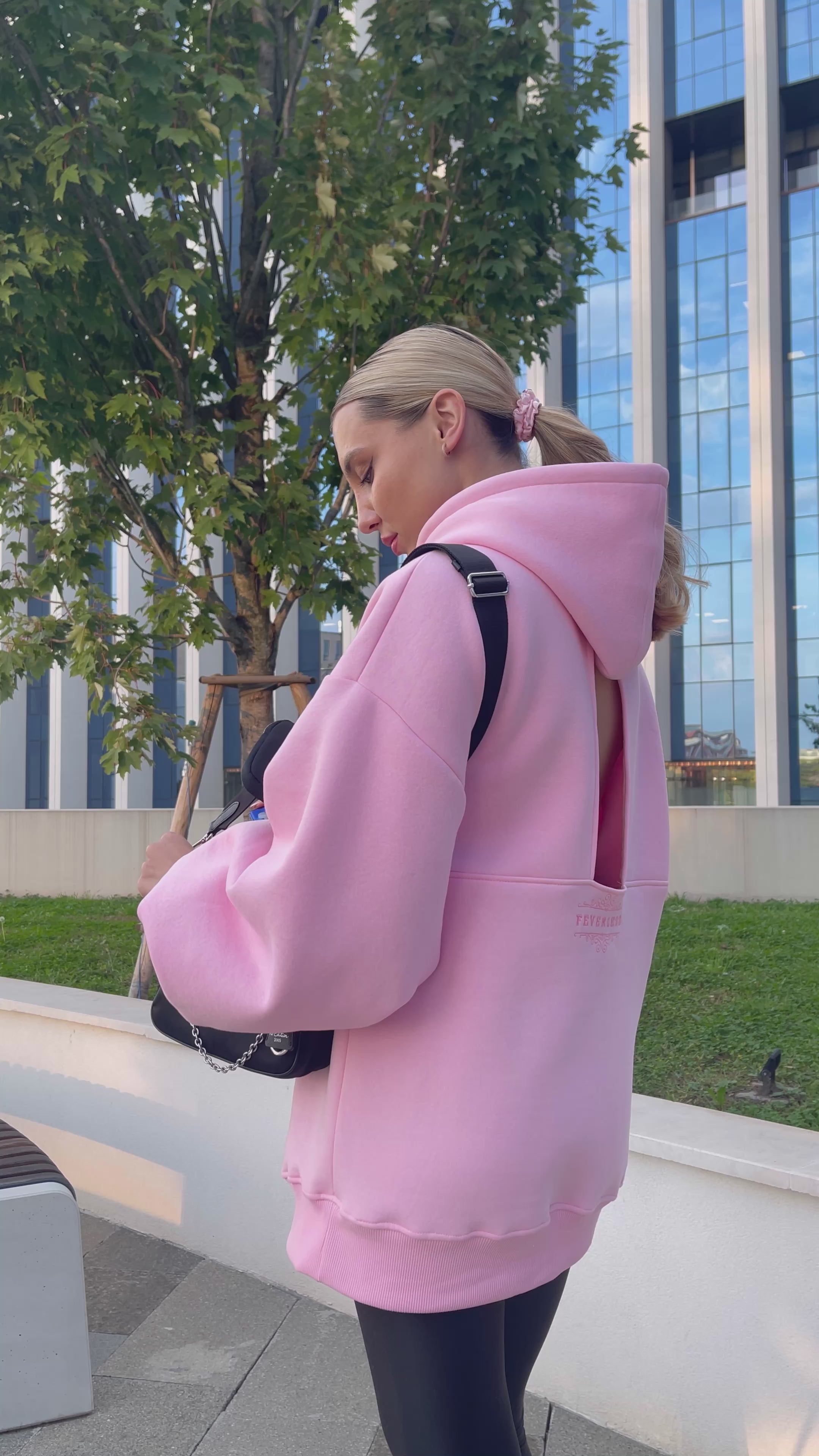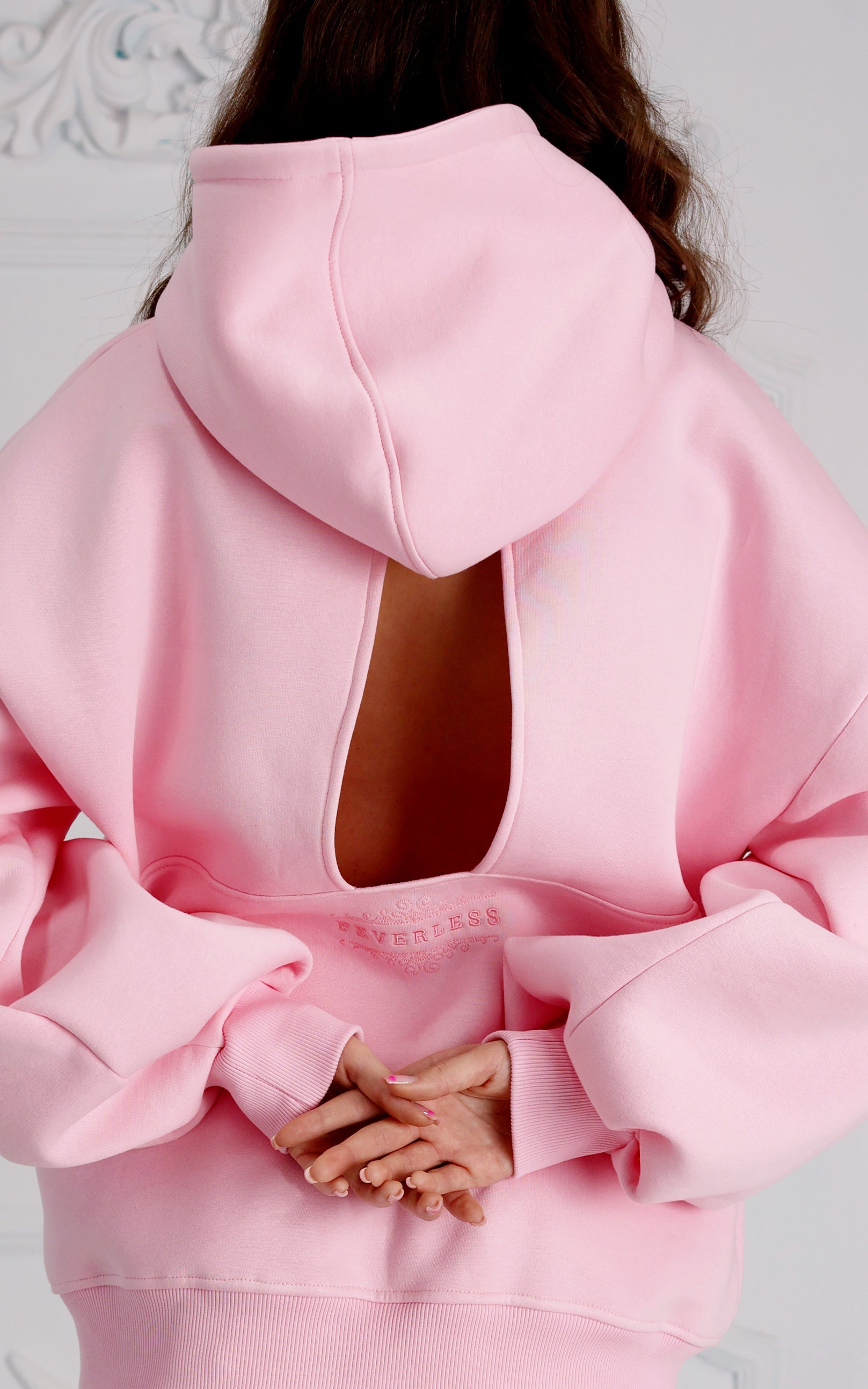 Hanorac " Blush " cu spatele gol și mâneci clopot BABY PINK