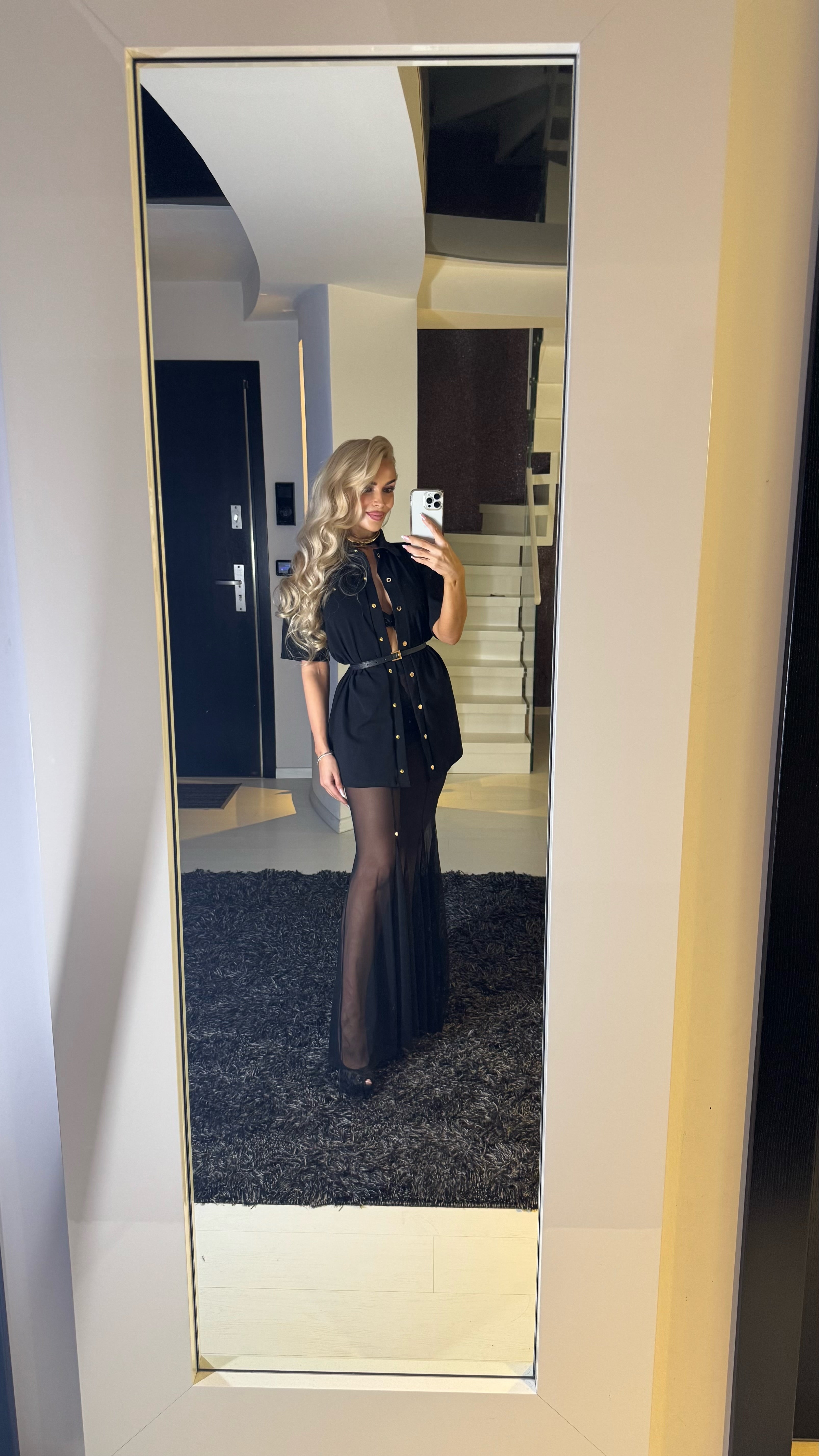 Tricou " Softie " cu guler și CAPSE DESCHIS Lung NEGRU