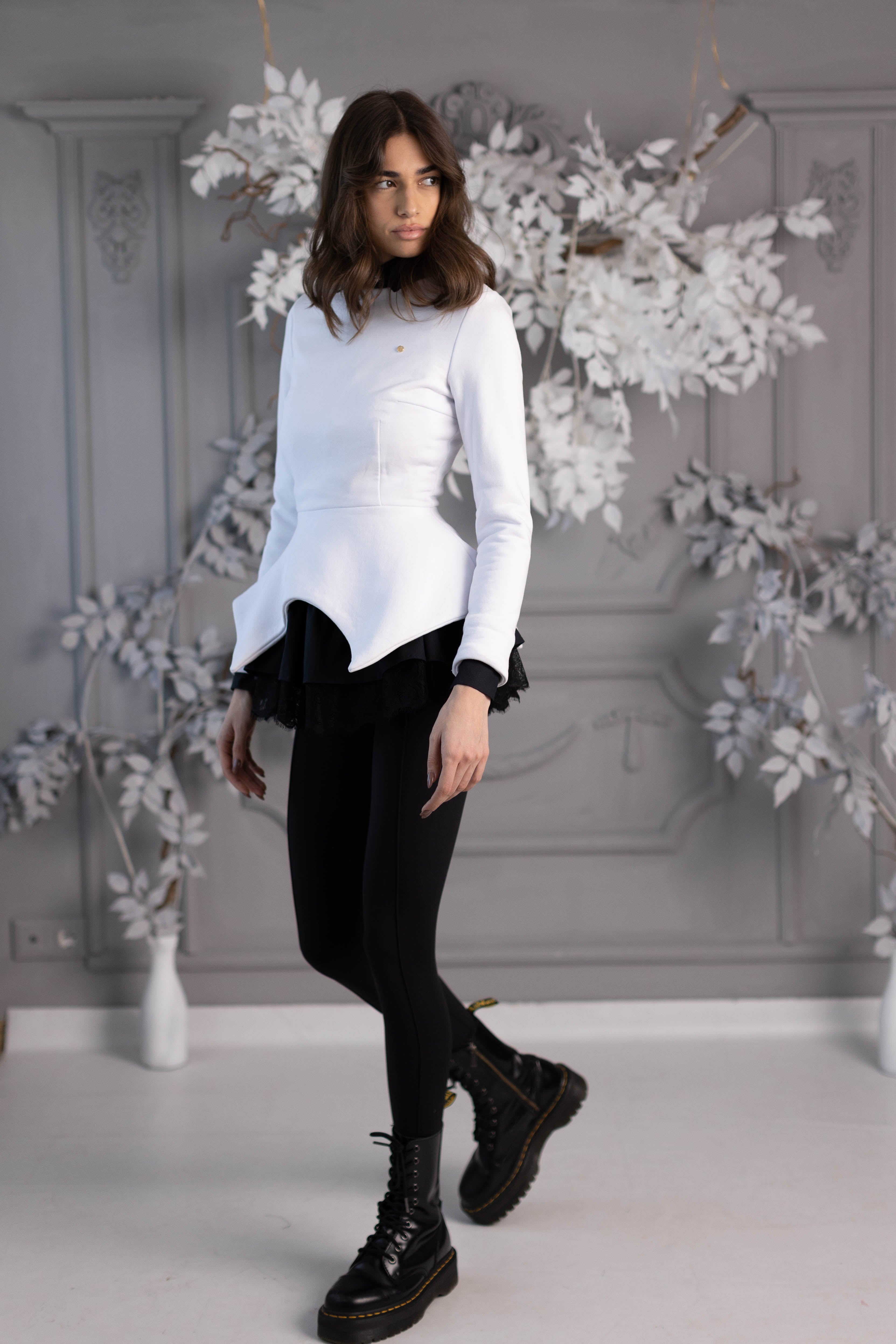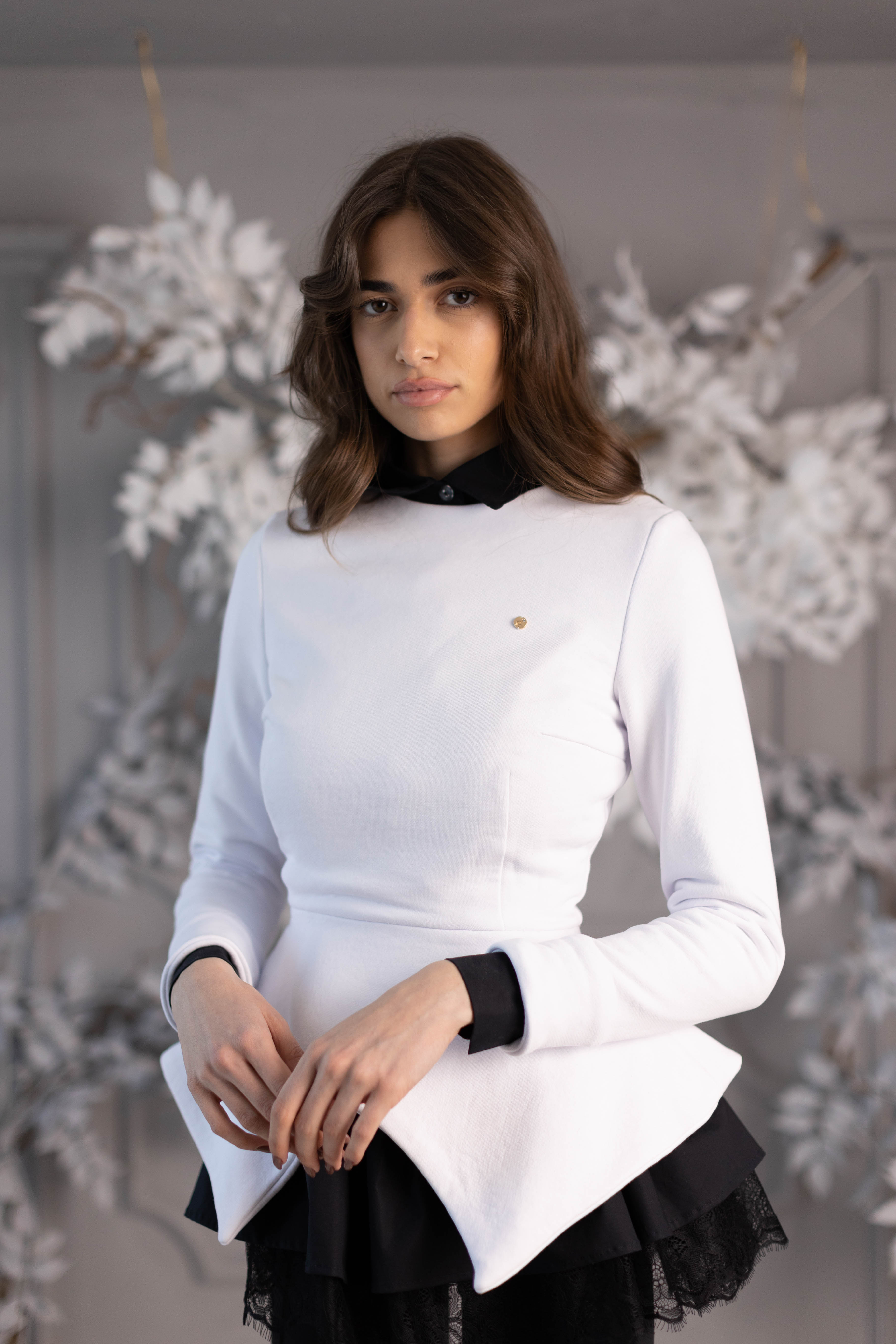 1 x Cămașa W albă in mărimea selectată care va veni și cu un cordon pentru zona taliei, pentru momentul când va fi îmbrăcată separat, sau pentru a fi utilizat peste Bluza W.