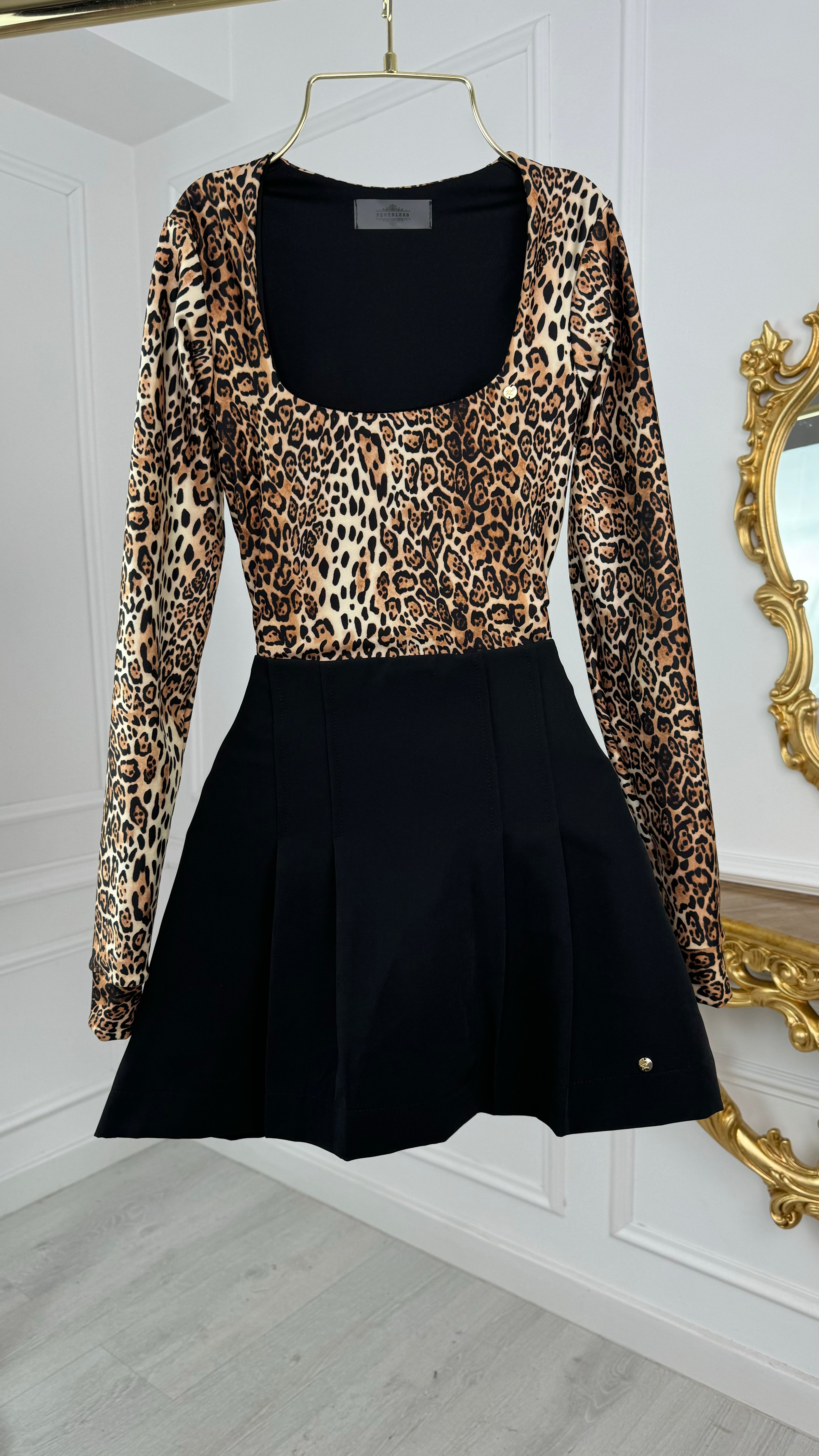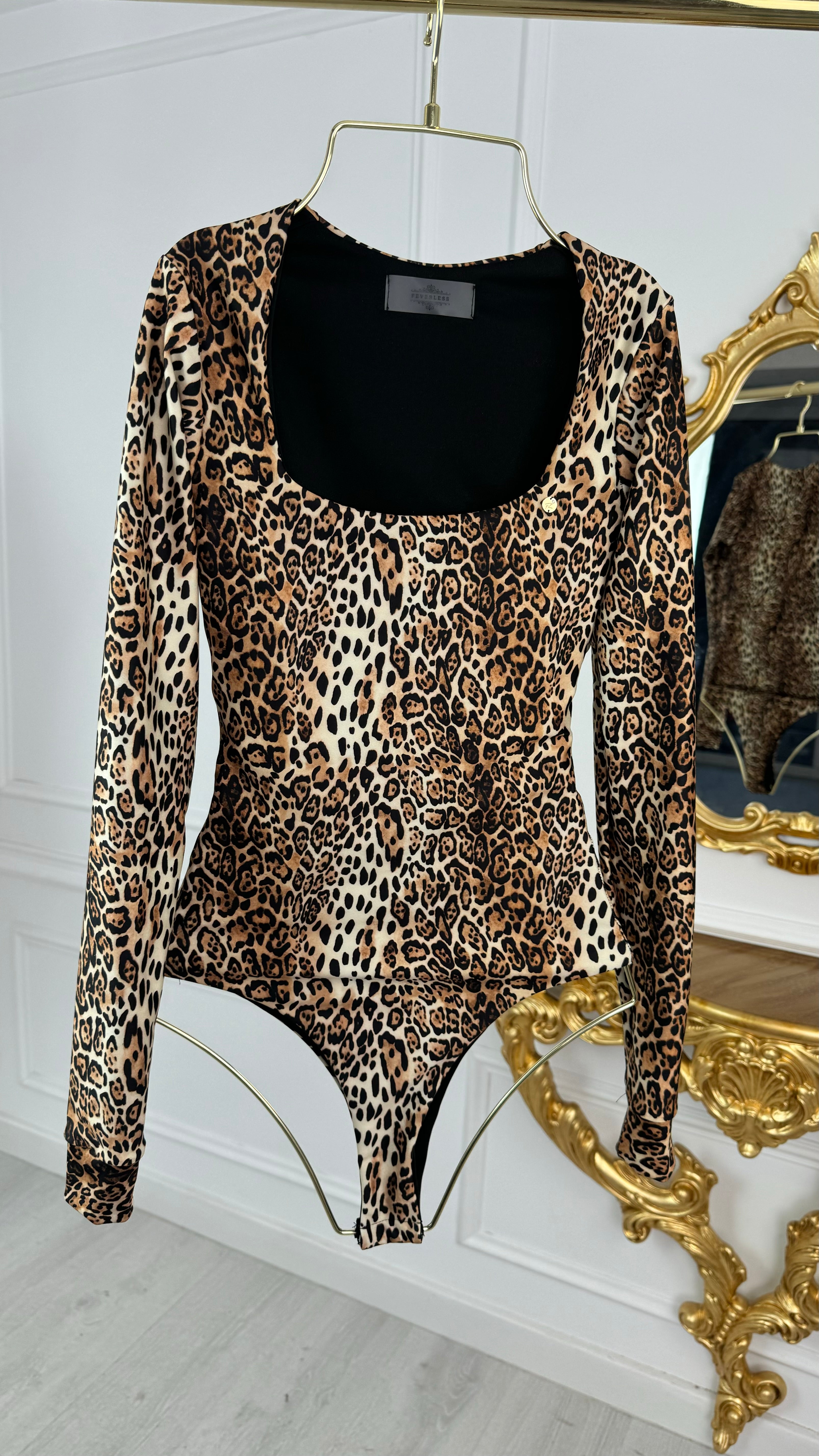 Body elastic modelator "Hera" cu mânecă lungă LEOPARD-PRINT